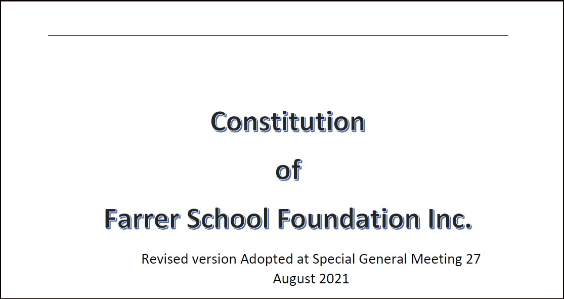 The Farrer School Foundation is governed by our Constitution & Rules and our registration with the ACNC – Australian Charities & Not-for-profit commission, and the terms & conditions of our Charitable Fundraising Authority (CFN/26090) issued by NSW Fair Trading.