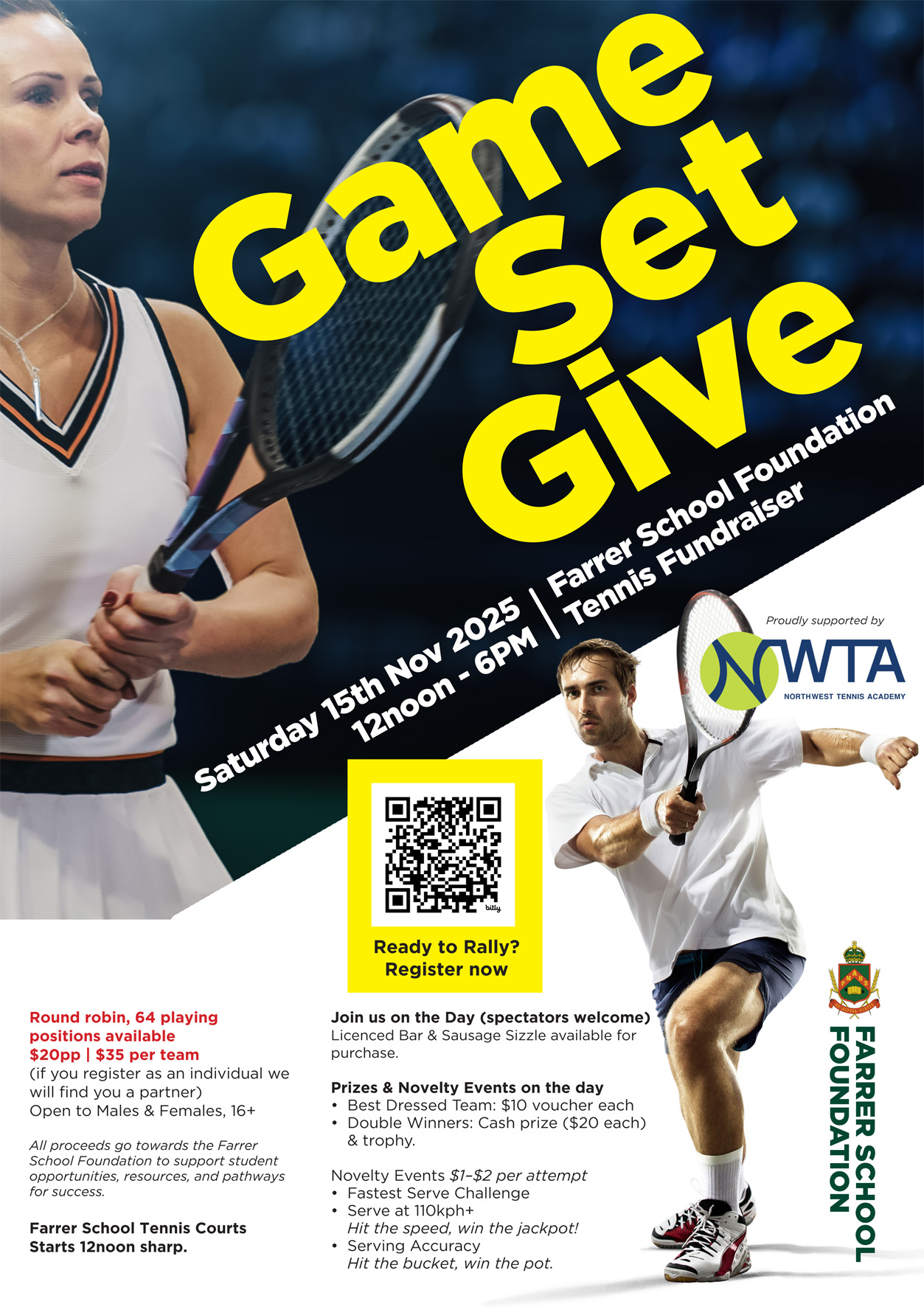 Great prizes to be won. Proudly supported by North West Tennis Academy.