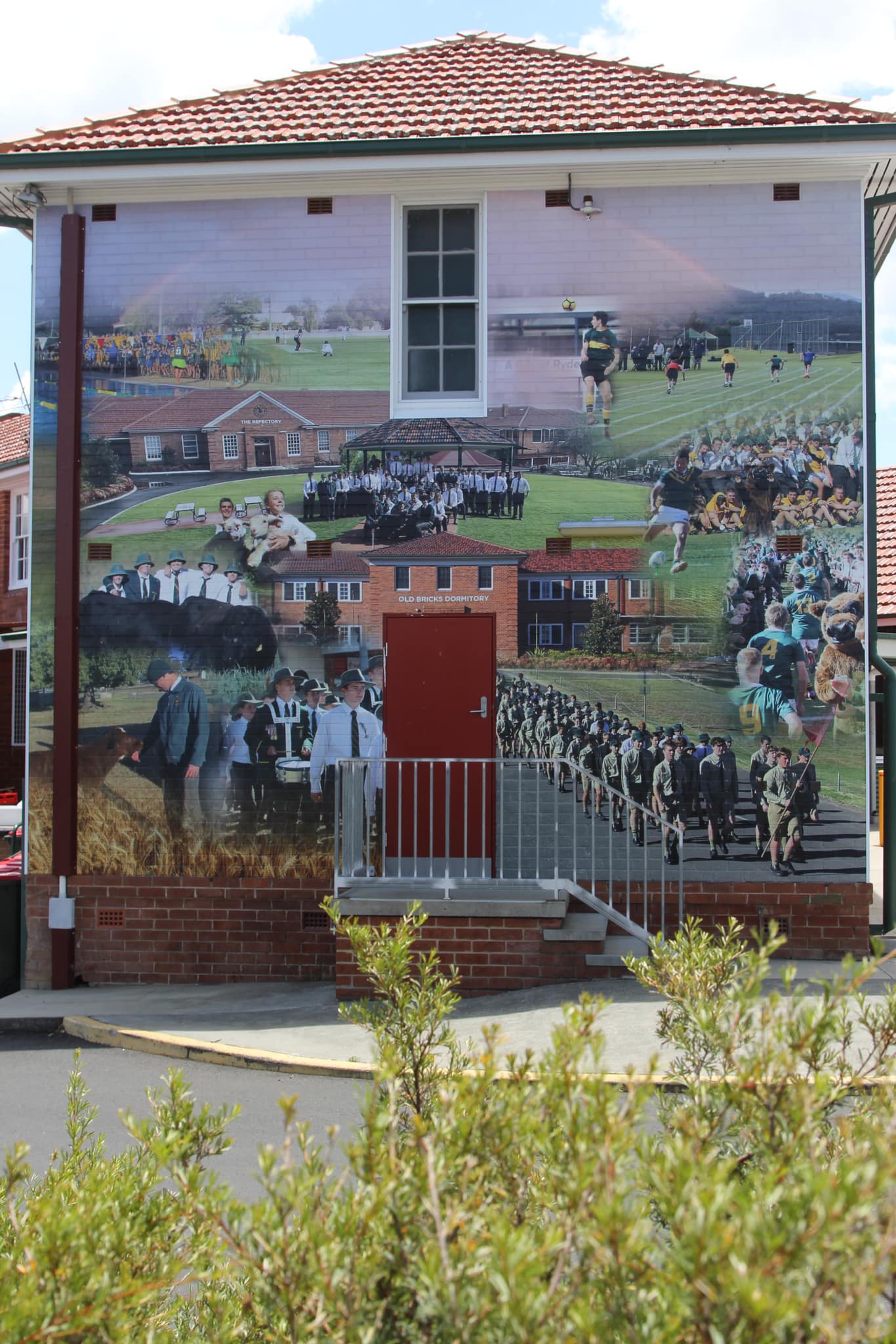 Farrer Class of 2023 elected to install a mural artwork on the old boys museum wall, which will display the vibrant and diverse opportunities and experiences Farrer offers - with depictions of agriculture, sports ranging from cricket to soccer to rugby league and the supportive and inclusive culture felt by marching, carnivals and mateship.